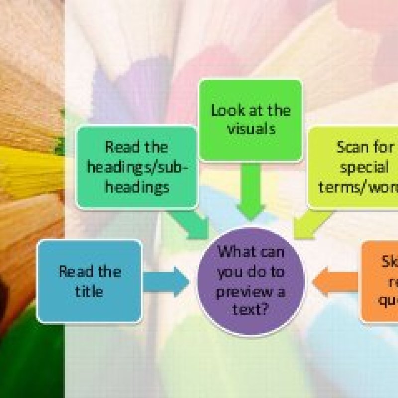 1. Read the title and headings to help you see what is coming and how material/reading is organized.