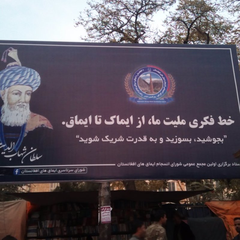 در نبش سه راهی که منتهی به مسجد شاه دو شمشیره، پشتنی بانک و وزارت اطلاعات و فرهنگ می شود، در برابر رسته ی کتاب فروشی های کابل، در یک بلبورد، هرچند به جا از قوم معزز ایماق ما گفته اند، اما در کنار یک جمله ی شعارکی(بجوشید، بسوزید و در قدرت شریک شوید) که حتماً از باند شر و فساد یاد گرفته اند، جای خالی رسالت ملی وظیفه را با تقسیم قدرت، عوض گرفته اند. در نمونه ی عام سوء تفاهم درک تاریخ در افغانستان، نوشته اند «خط فکری ملیت ما از ایماک تا ایماق» که در پهلوی آن تصویر یک شمشیرکش، دیده می شود. زیر تصویر شخص شمشیر کش، نوشته اند: «سلطان شهاب الدین غوری».