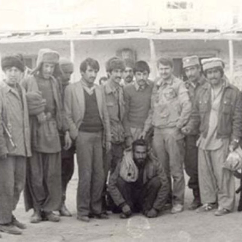 یک مجاهد افغان اسیر در دست چپی هایی که با چپ رویی، همکار شوروی شده بودند. در این تصویر، شراکت خیانت آمیز کسانی دیده می شود که در همدستی با بیگانه، مردم خود را نابود می کردند.