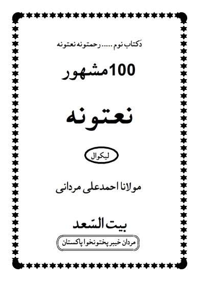 نعتونہ رحمتونہ (سو پشتو نعتیہ کلاموں پر مشتمل ایک حسین مجموعہ ہے ) مولانا احمدعلی مردانی کا یہ نواں نعتیہ مجموعہ ہے جس نعتیہ کلاموں سمیت پانچ حمدیہ کلام بھی موجود ہیں ۔ نیز کتاب کے اٰخر میں درود وسلام کی عظمت واہمیت سے متعلق گیارہ نظمیں ہیں ۔۔۔۔۔۔۔۔۔۔یقینا قارئین ونعت خوان حضرات اسے ضرور پسند فرمائیں گے ۔ ۔۔۔۔۔۔۔۔۔۔ ان شااللہ