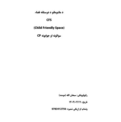 دلته د ماشوم ساتني اړوند د ماشومانو دوستانه فضاء سوالونه او جوابونه دي
