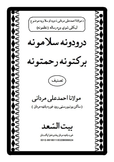 درود وسلام کی عظمت واہمیت سے متعلق مولانا احمدعلی مردانی کا تحریر کردہ مختصر رسالہ جو گیارہ پشتونظموں پر مشتمل ہے ۔ جوقارئین ونعت خواں حضرات کے دلی سکون کا باعث بنیں گے ۔ ان شااللہ ۔۔۔۔۔۔۔۔۔۔۔ اللہ کریم موصوف کی مذکورہ کاوش کو شرفِ قبولیت سے نوازے ۔ آمین ۔۔۔۔۔۔۔۔۔وصلی اللہ تعالیٰ علیٰ خیر خلقہ محمد واٰلہ واصحابہ اجمعین