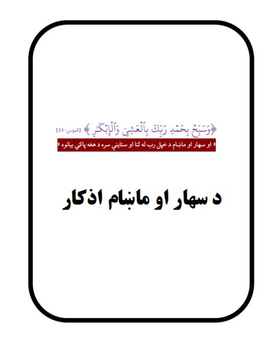 په دې کوچنی رساله کې د سهار او ماښام د ذکرونو فضیلت د رسول الله صل الله علیه وسلم د مبارکو احادیثو په رڼا کې تشریح شوی د قدرمنو لوستونکو د لا پوهیدنې په موخه د هر مبارک ذکر او د هغه اړوند مبارک حدیث پښتو ژباړه هم لیکل شوې .