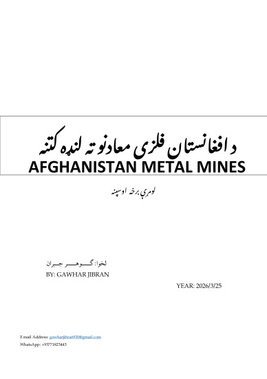 د افغانستان فلزي معادنو ته لنډه کتنه، ګوهر جبران، فلزي معادن ټول مشهور معادن پکی اخيستل شوی دي لکه حاجیګک سياه دره او نور مشهور معادنونه پدي هيله يم چې دا کتاب ستاسو د خوښي وړ وګرځي.