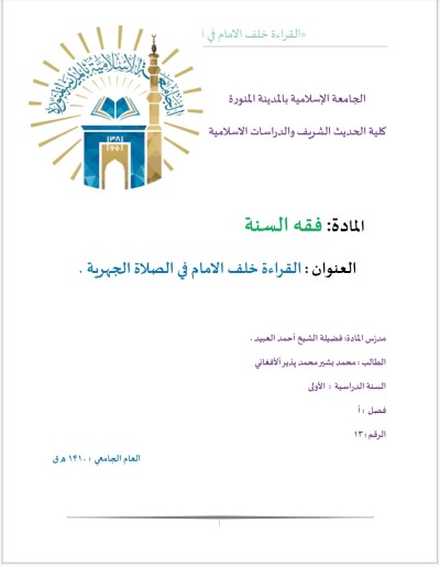 تتناول هذه الدراسة مسألة **القراءة خلف الإمام في الصلاة الجهرية**، وهي من القضايا الفقهية التي اختلف فيها العلماء، حيث يرى بعضهم عدم وجوب قراءة المأموم في الصلاة الجهرية، مستندين إلى آيات مثل: *"وإذا قرئ القرآن فاستمعوا له وأنصتوا"*، وأحاديث نبوية تشير إلى أن قراءة الإمام تكفي. في المقابل، يرى آخرون وجوب قراءة المأموم، معتبرين أن الأدلة تدعو إلى مشاركته في القراءة حتى في الصلاة الجهرية. يهدف البحث إلى **تحليل الأدلة الشرعية** ومناقشة **آراء المذاهب الفقهية** المختلفة، مع توضيح أسباب الخلاف، للوصول إلى **حكم شرعي دقيق** مبني على القرآن، السنة، وأقوال العلماء، بما يساعد المسلم على أداء عبادته بشكل صحيح