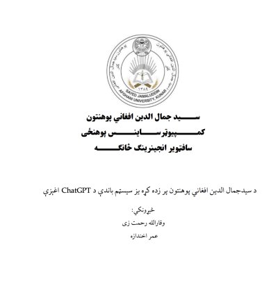 دا اثر یو علمي څېړنه (Research) ده چې په تعلیمي بهیر کې د مصنوعي ځیرکتیا، په ځانګړي ډول د ChatGPT رول او اغېزې څېړي. په دې کتاب کې د سید جمال الدین افغاني پوهنتون د استادانو او محصلینو د تجربو په رڼا کې، د زده کړې په کیفیت، د څېړنې په اسانتیا او د اکاډمیکو ننګونو په اړه مفصل بحث شوی دی. دا کتاب د هغو کسانو لپاره یوه غوره سرچینه ده چې غواړي په عصري زده کړو کې د ټیکنالوژۍ له مثبتو او منفي اړخونو خبر شي.